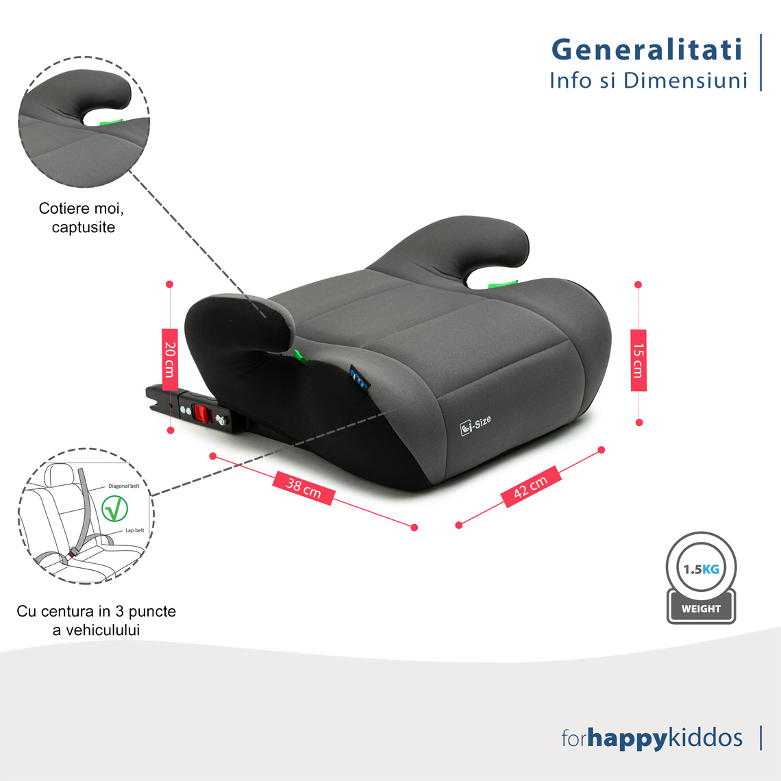 Inaltator auto Juju Jazzy Booster i-Size ISOFIX, Negru-Gri