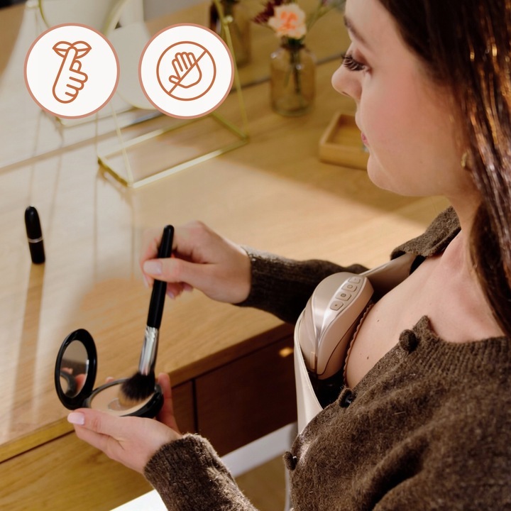 Designul hands-free permite utilizarea pompelor fara a tine dispozitivul in mana. Forta de vacuum atent calibrata si nivelul redus de zgomot asigura discretie si confort, chiar si in timpul activitatilor zilnice.