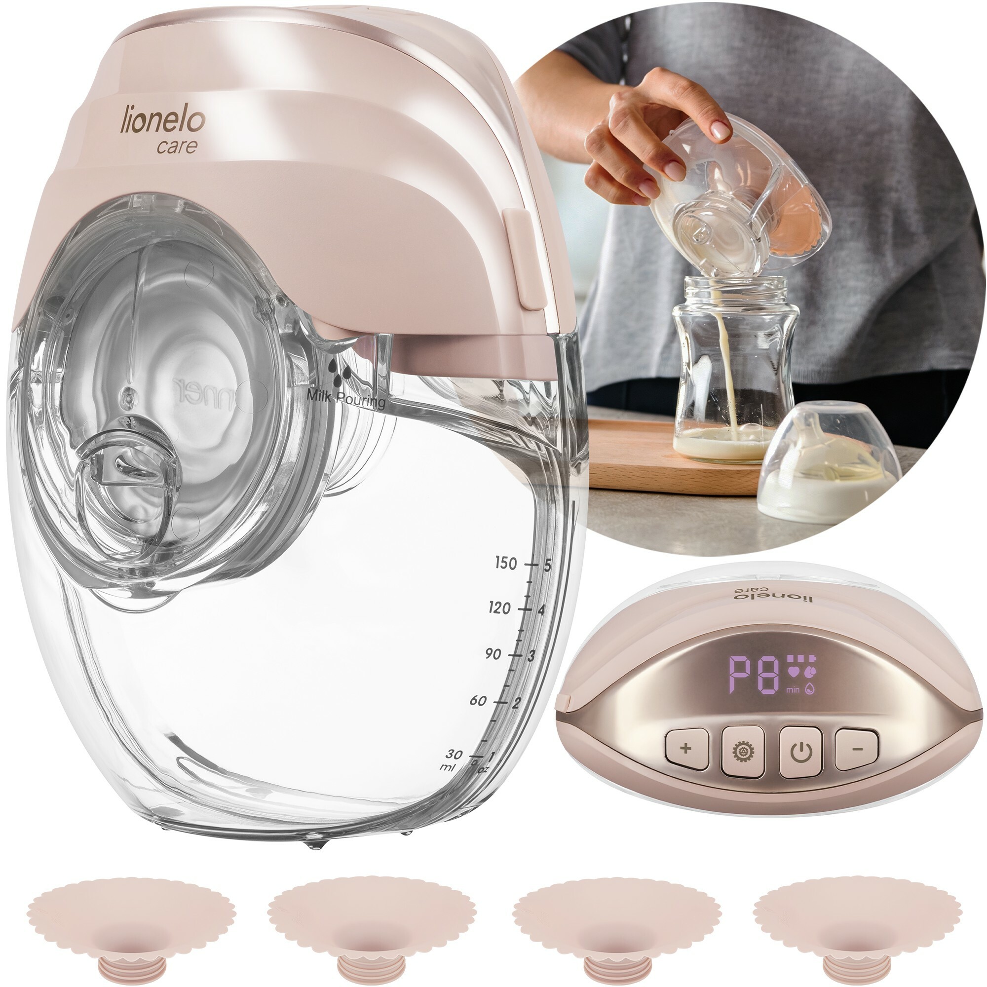 Pompa de san, Lionelo, Fidi Free Slim, Portabila, Cu accesorii, Hands-free, Trifazata, Panou control, Autonomie pana la 3 h, 9 functii de masaj, Silentioasa- 40 db, Capacitate 150 ml, Roz