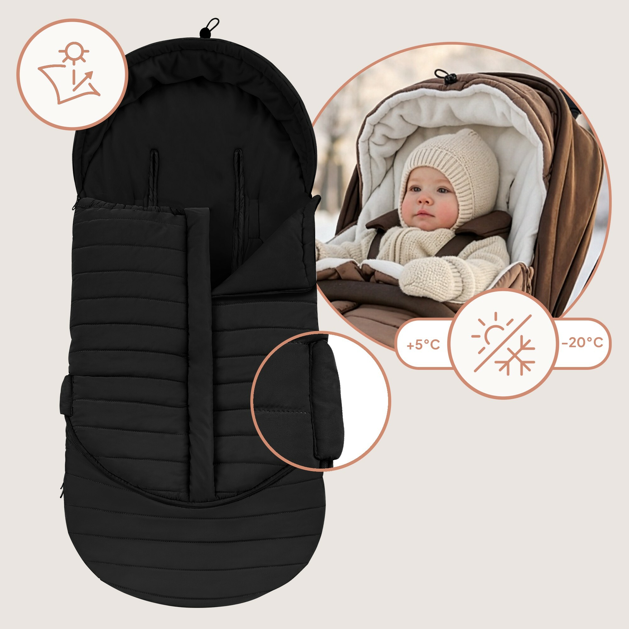 Sac de iarna, Lionelo, Oli, Pentru carucior, landou sau scaun auto, 101x45 cm, Impermeabil, Rezistent pana la -20 grade, Extensibil, Negru