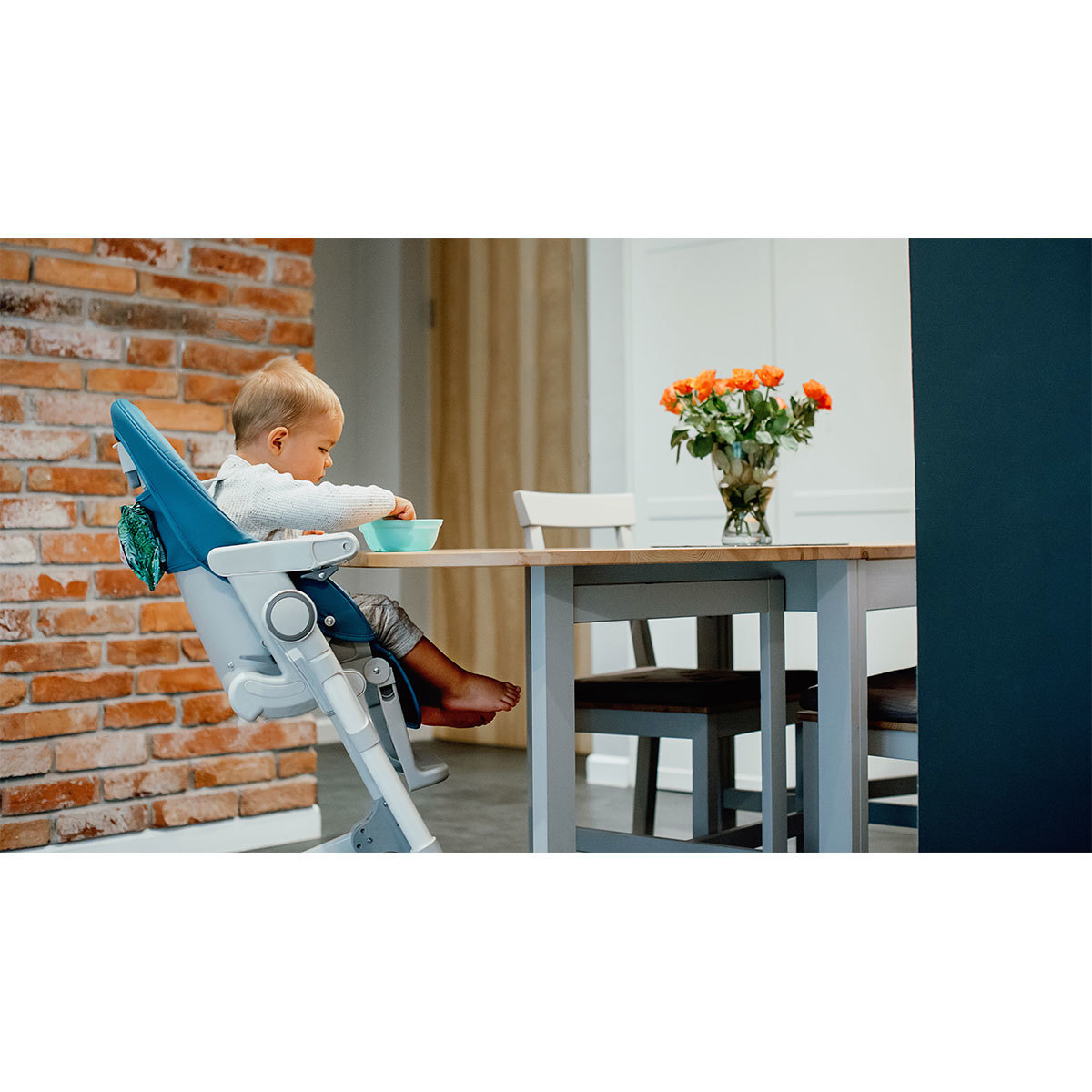 Scaunul inalt Cora are o reglare pe inaltime pe 4 niveluri si va permite sa retrageti tava detasabila pe 2 niveluri. Produsul vine cu o schimbare a pozitiei spatarului pe 3 niveluri.