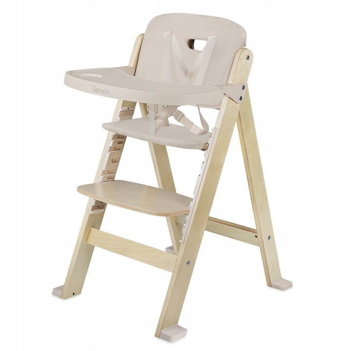 Scaun de masa, Lionelo, Floris, 3 in 1, Din Lemn, Transformabil, Reglabil pe inaltime in 4 pozitii, Suport picioare- 4 pozitii, 6 luni- 12 ani, Sustine 40 kg, Bej